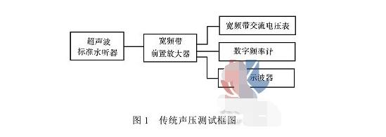 標準水聽器經(jīng)過校準,它能將作用在它上面的聲壓轉(zhuǎn)換成相同頻率及波形的交流電壓信號,此電壓信號與聲壓的強度成正比。當將該水聽器插入受超聲波作用的液體介質(zhì)中時,它就有一電壓信號輸出。經(jīng)前置放大器不失真放大后,送入交流電壓表。數(shù)字頻率計同時測得超聲波的頻率,示波器可隨時監(jiān)視信號電壓波形的變化。這一測量方法已被普遍采用了。