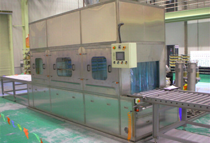 本機(jī)特性:連續(xù)通過(guò)式清洗、漂洗、除水、干燥。